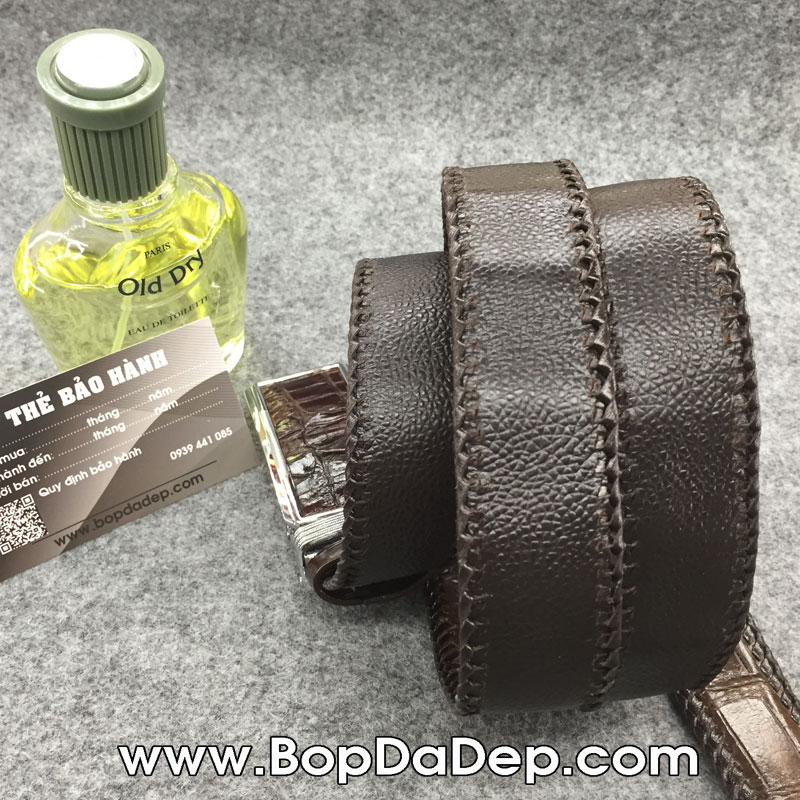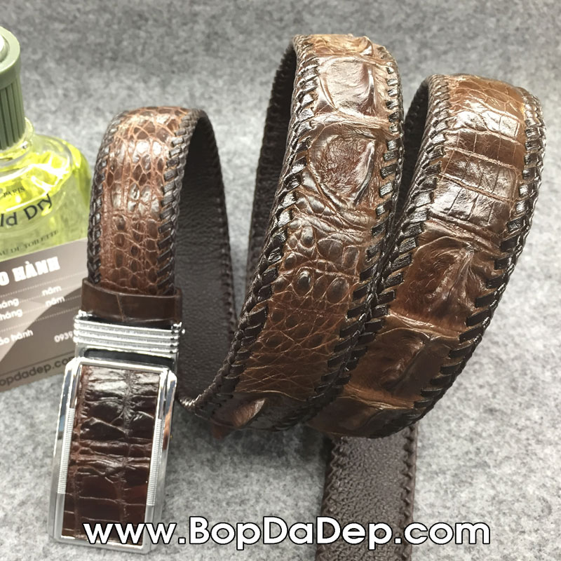 Với kiểu gai đuôi ít cộm, mặt trong làm từ da bò, 2 mặt da được đan lại tạo một nét đẹp đặc trưng và đầy sang trọng. Đây là một chiếc thắt lưng cao cấp làm từ da đuôi cá sấu, được áp dụng công nghệ thuộc da cao cấp luôn giữ cho da mềm mại, tưởi sáng đặc biệt là tông màu nâu cánh gián, một màu sắc tượng trưng cho sức mạnh và nam tính.